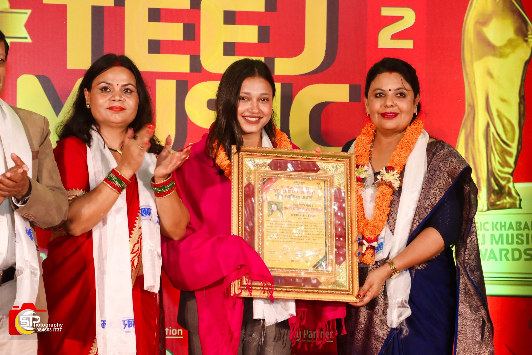 काठमाडौं भदौ ६, स्पेस 4K टेलिभिजनकी सञ्चारकर्मी विनिता कुँवर क्षेत्रीलाई चौथो म्युजिक खबर तिज म्युजिक अवार्ड २०८२ को अवसरमा कलाकारीता सम्मान प्रदान गरिएको छ। उनलाई प्रतिनिधि सभा सदस्य माननीय रेखा यादवको हातबाट सम्मानित गरिएको हो।